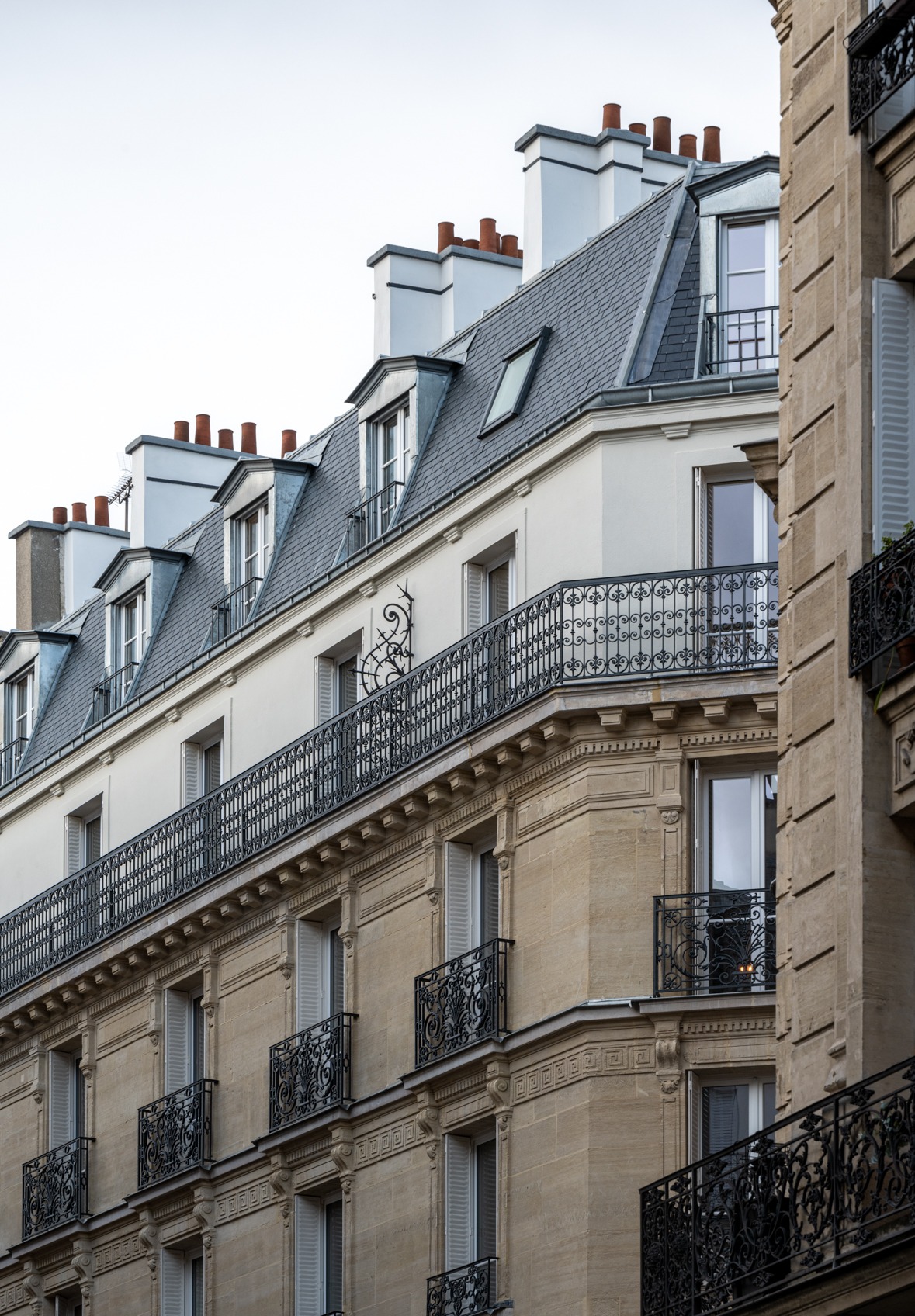 – L'enveloppe : ravalement de l’ensemble des façades, pose de menuiseries extérieures double vitrage bois et rénovation des persiennes, création d'isolation thermique extérieure sur cour