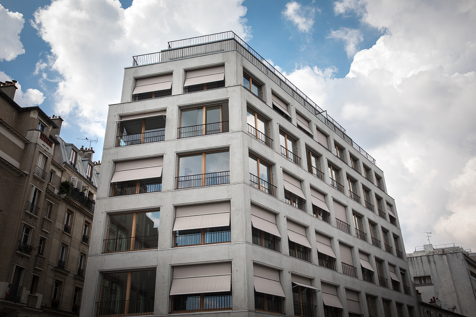 Du fait d'une situation urbaine particulière, en proue d'îlot, caractérisée par une vue dégagée et une grande visibilité, l'agence Armand Nouvet Architecture et Urbanisme a voulu un immeuble se présentant avec force et évidence.