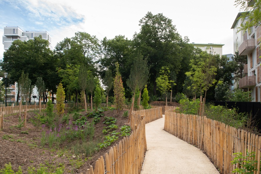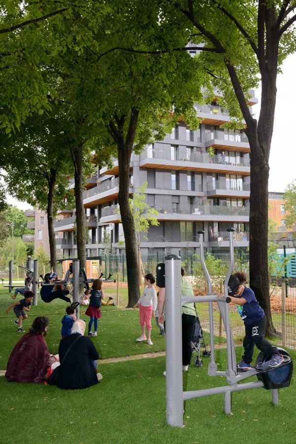 Ce parc aménagé comprend des aires de fitness, des aires de jeux d'enfants ainsi qu'un jardin partagé.