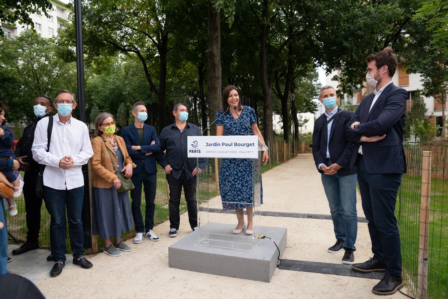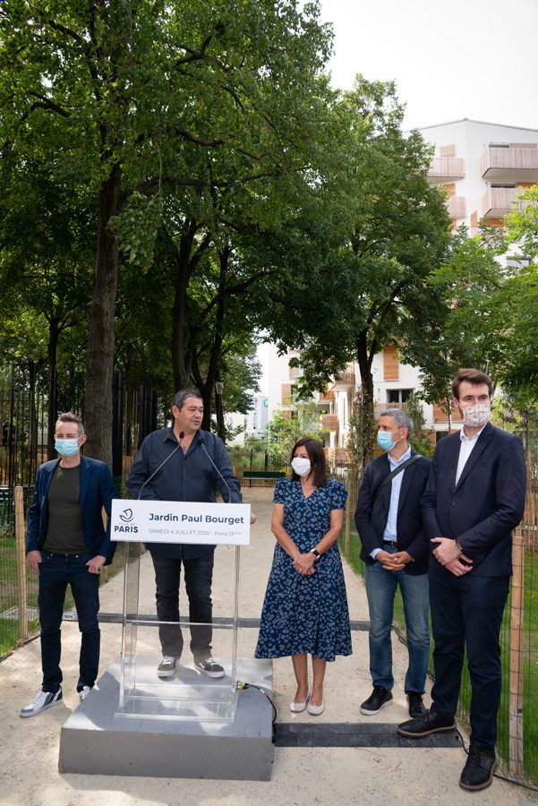 Samedi 4 juillet 2020, les équipes de la Ville de Paris, ont inauguré le nouveau jardin Paul Bourget, en présence de la Maire de Paris, Anne Hidalgo et du Maire du 13e arrondissement de Paris, Jérôme Coumet et Ian Brossat, adjoint à la Maire de Paris en charge du logement, de l'hébergement d'urgence et de la protection des réfugiés.
