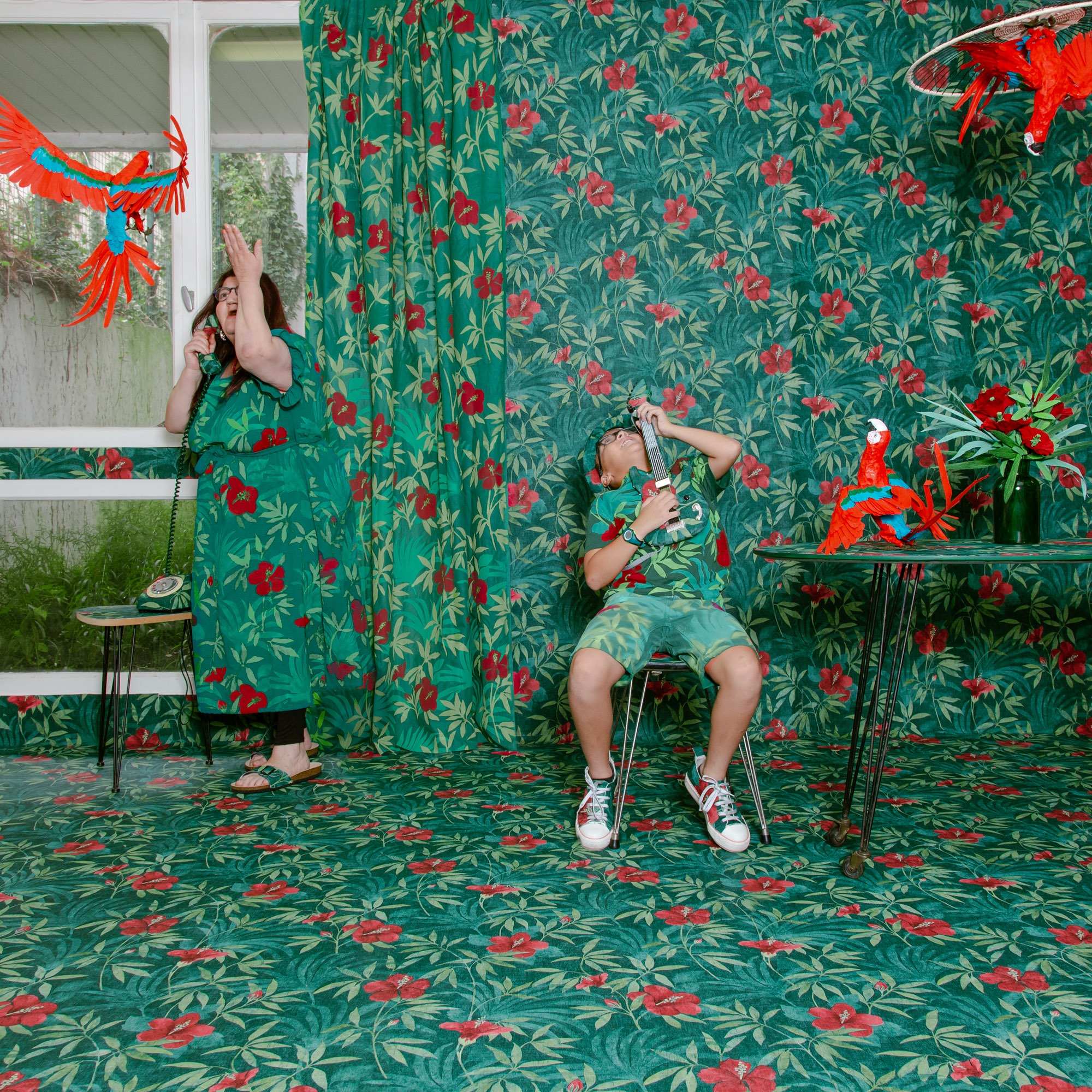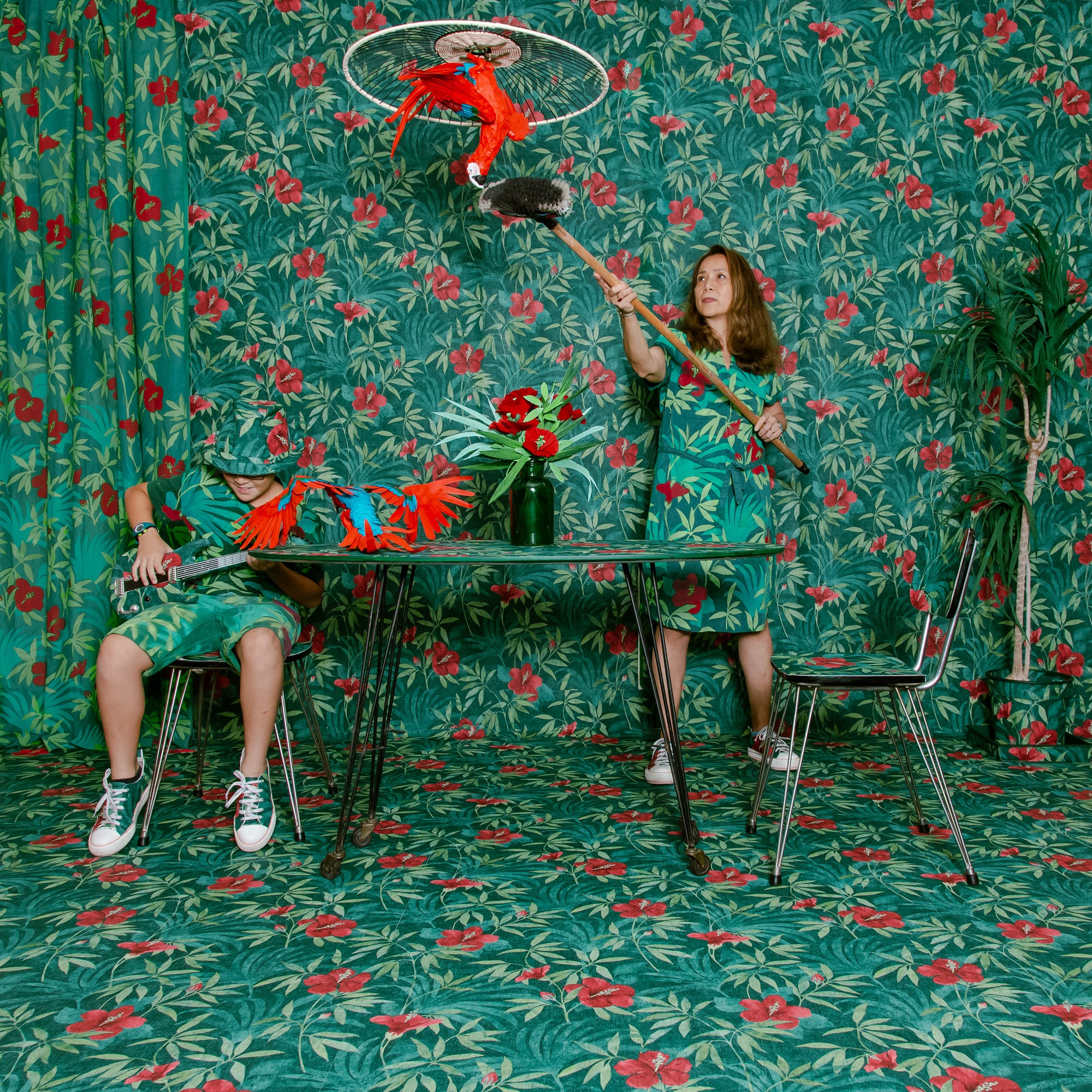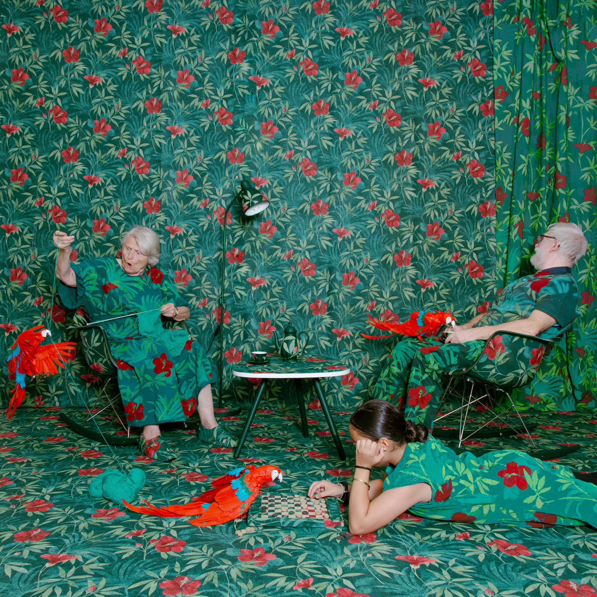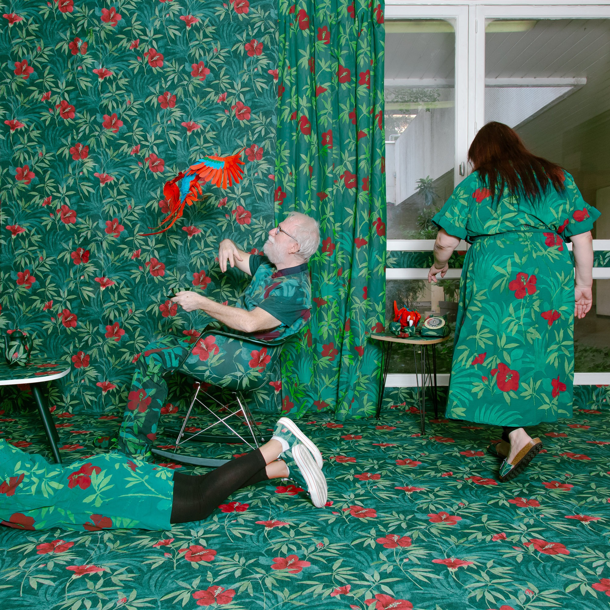 Des perroquets, attirés par l’ambiance tropicale de l’espace de vie