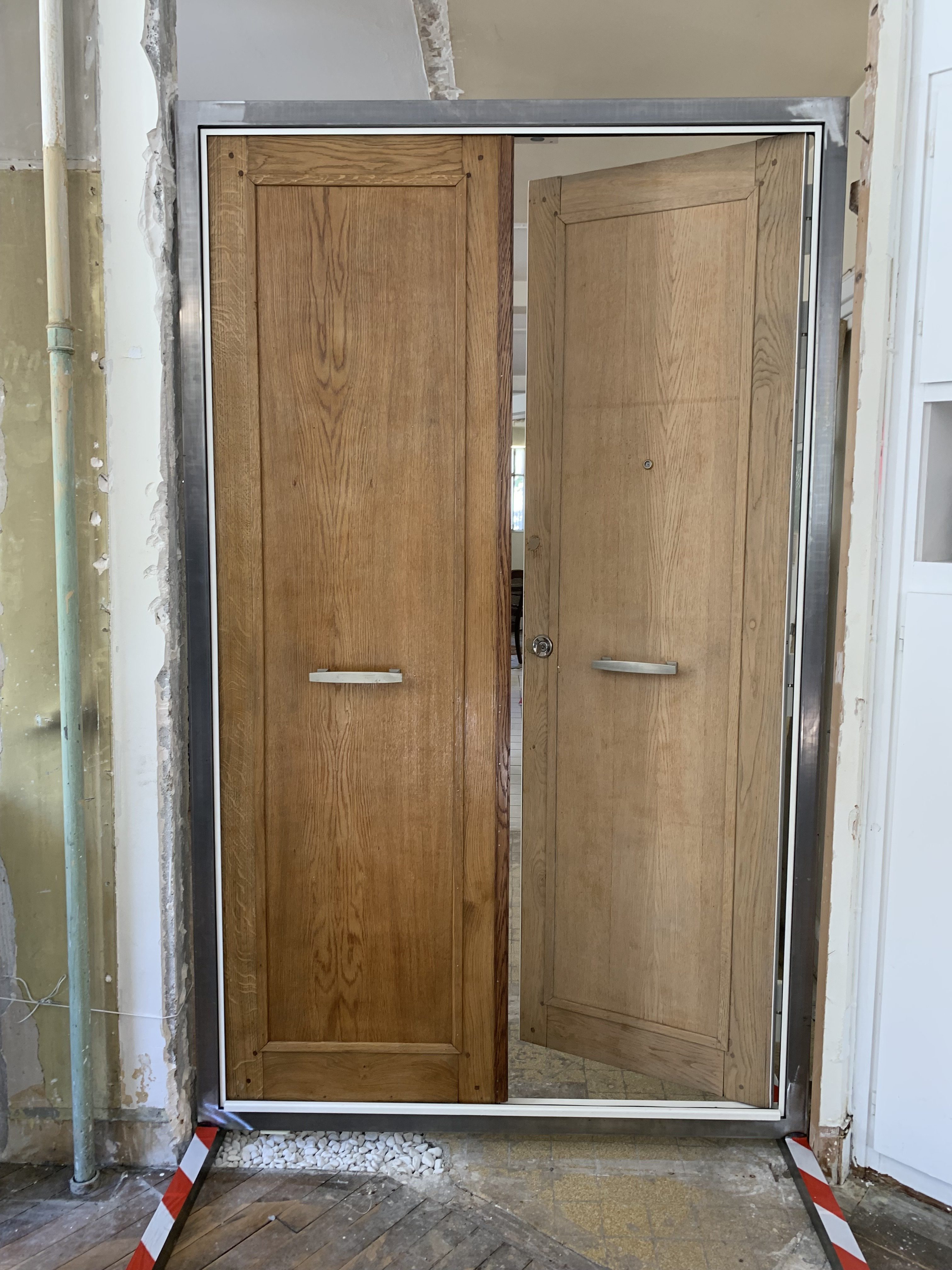 Accompagnés par notre BET Albert & Co, démonstrateur de l'économie circulaire, nous avons intégré une démarche de réemploi ambitieuse, notamment en reconditionnant les portes palières avec un blindage additionnel leur conférant des propriétés anti-feu. Une première !