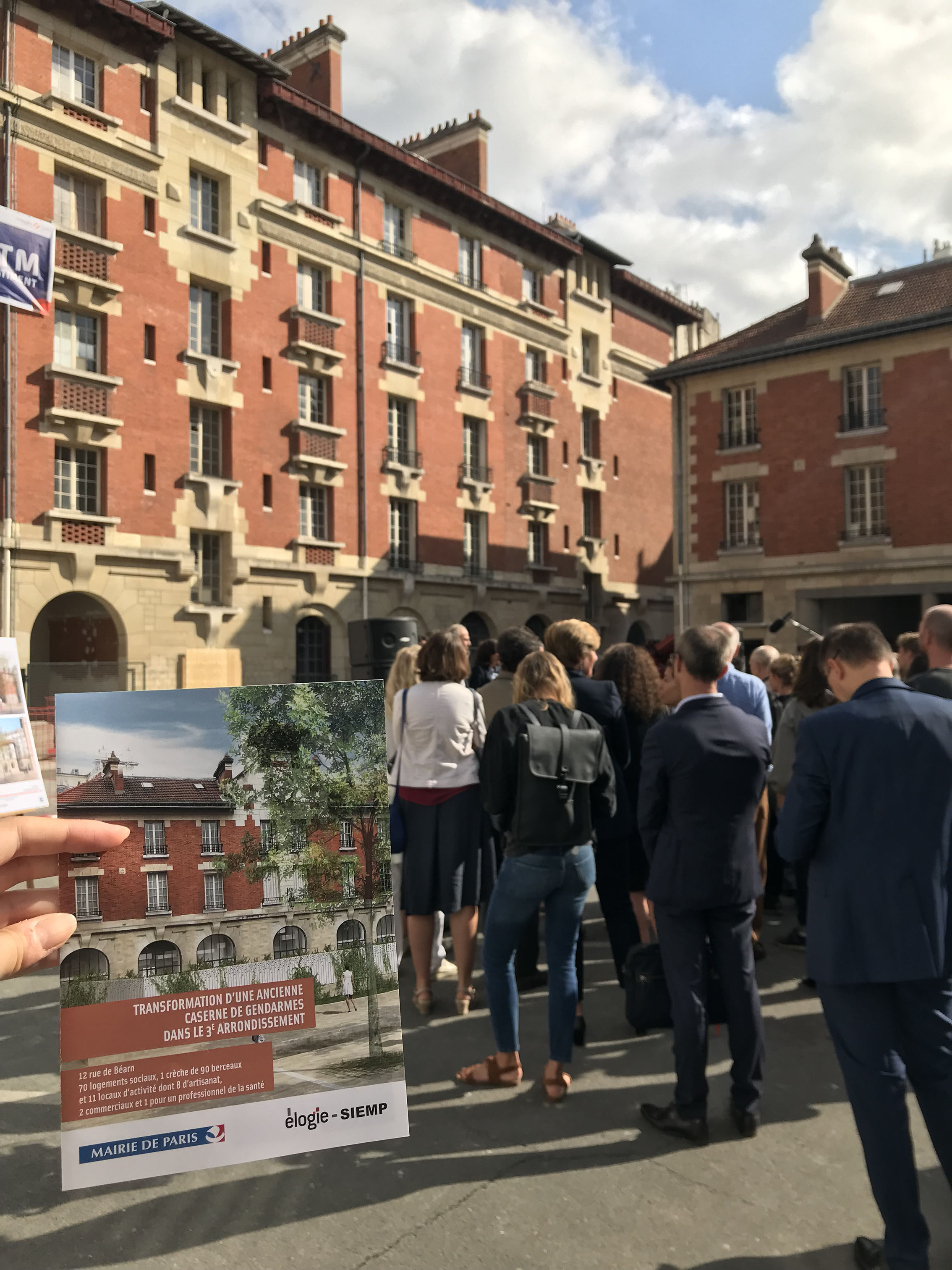 Jeudi 20 septembre 2018, la pose de première pierre de l'ensemble immobilier situé au 12 rue de Béarn à Paris 3e a marqué le début d’une transformation exemplaire d'une ancienne caserne de gendarmerie en logements, crèche et locaux d'activité.