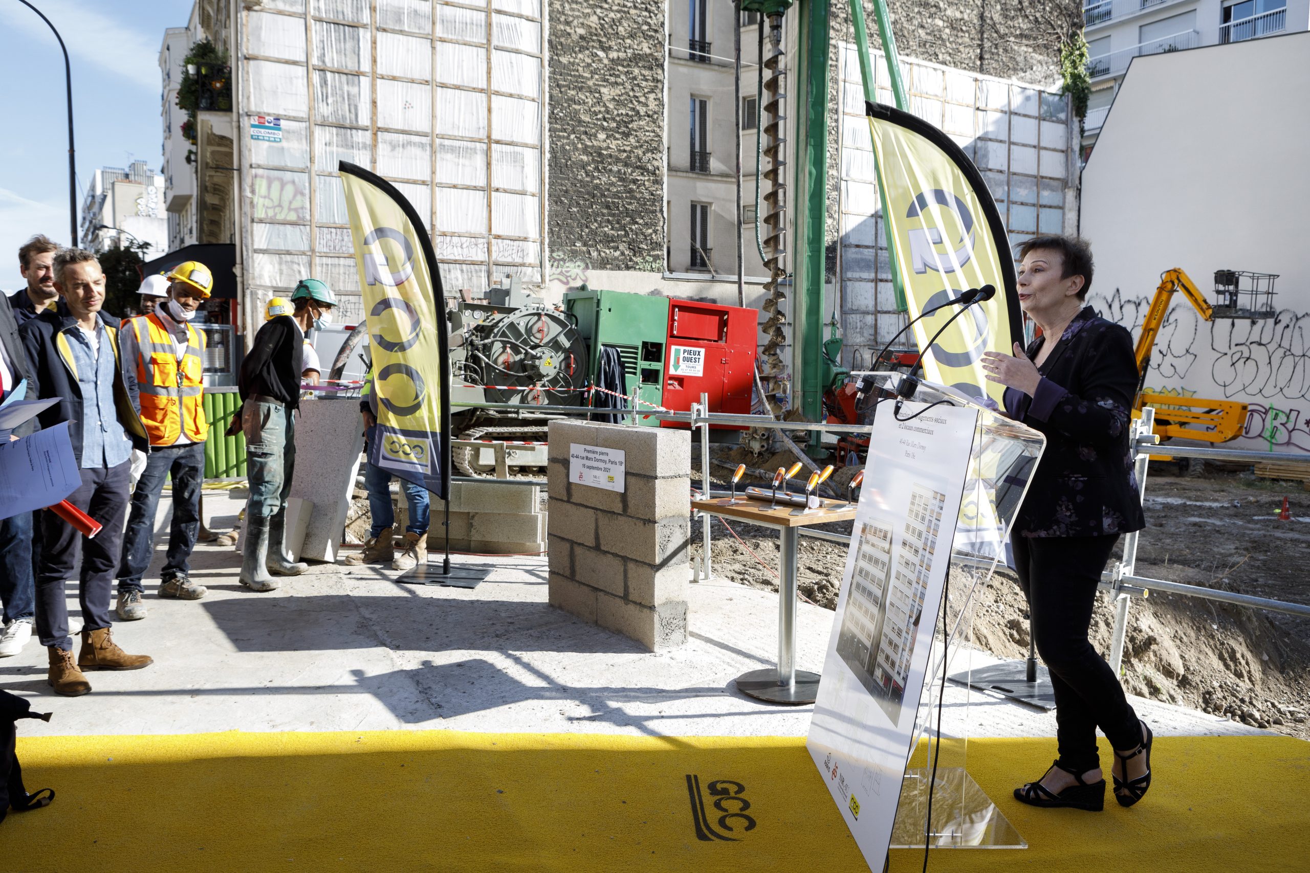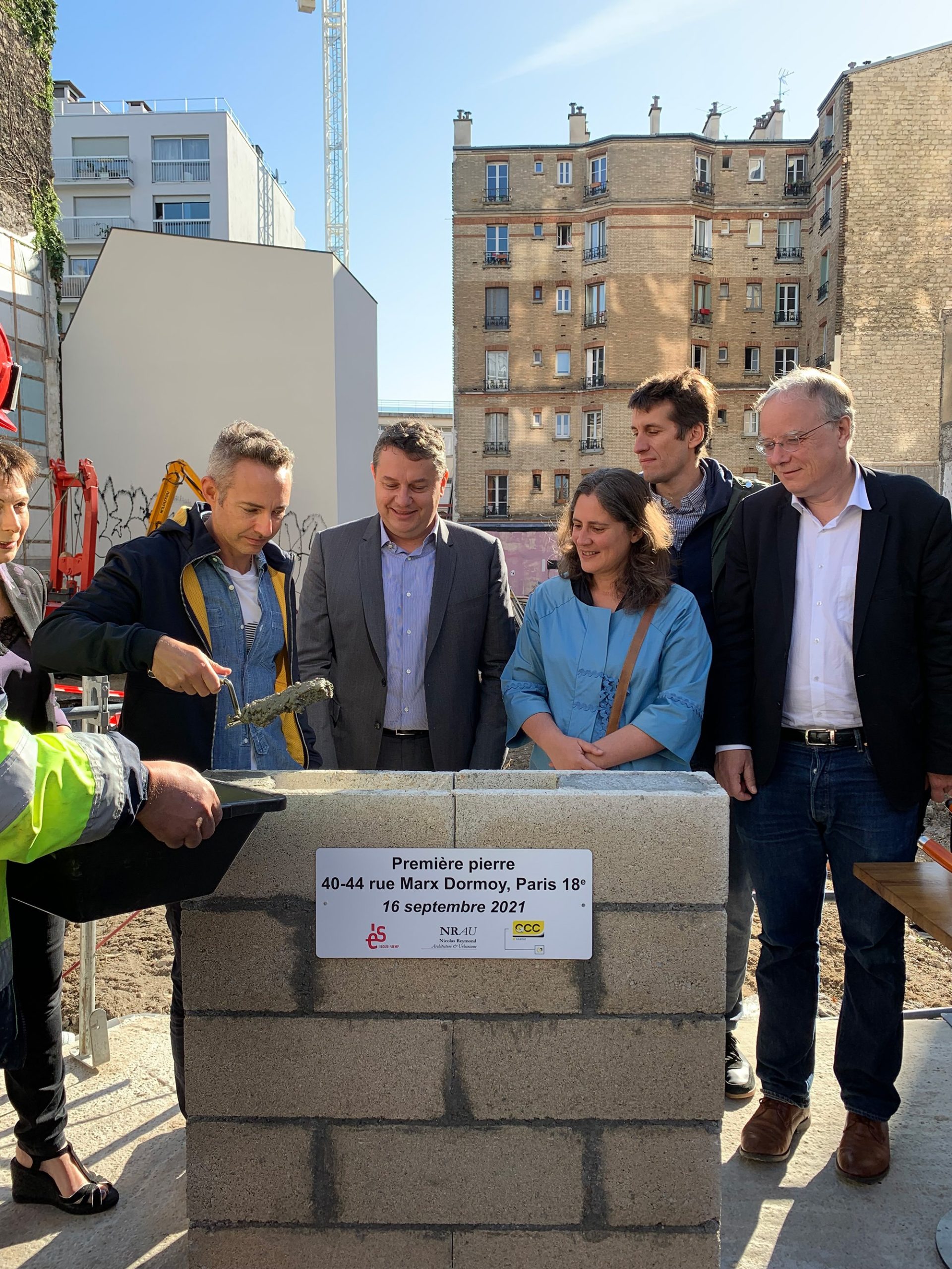 Nous étions réunis, jeudi 16 septembre, en présence d'Eric Lejoindre maire du 18e arrondissement, Jacques Bauderier adjoint à la Maire de Paris en charge du suivi des chantiers et de la transition écologique du bâti, Ian Brossat adjoint à la Maire de Paris en charge du logement, de l'hébergement d'urgence et de la protection des réfugiés, Nathalie Maquoi Présidente de la Soreqa, Laurence Patrice Présidente d'Elogie-Siemp et, enfin, le représentant du Préfet de la région d’Île de France, afin de procéder à la pose de la première pierre de deux de nos opérations emblématiques de la lutte contre l'habitat indigne :
