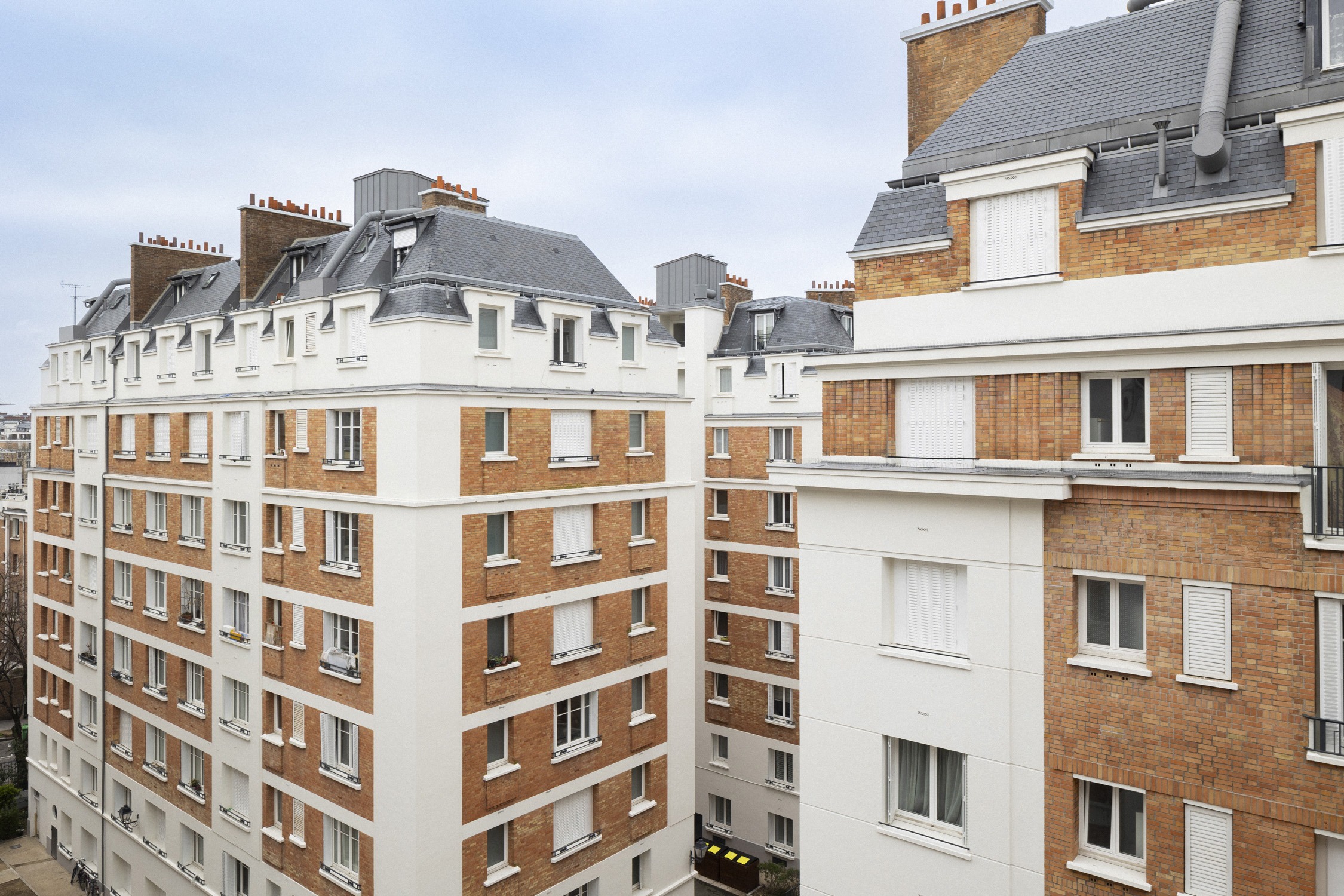 Le programme de travaux a porté sur la rénovation en milieu occupé de l'ensemble des logements, façades, toitures et espaces extérieurs ainsi que la restructuration de chambres de bonnes en logements.