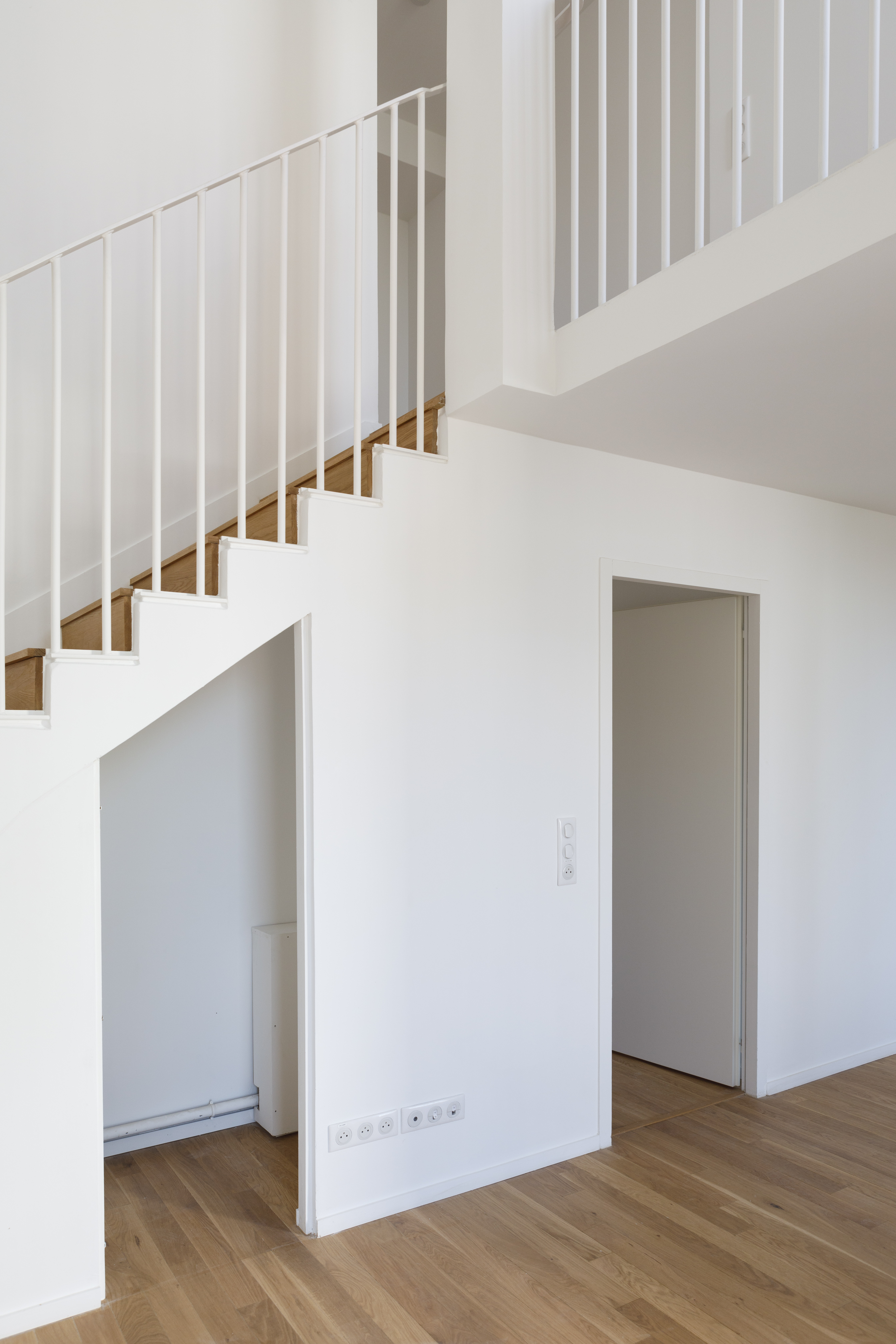 Le bâtiment existant est composé principalement de logements de type T2/T3 desservis par quatre cages d'escaliers.